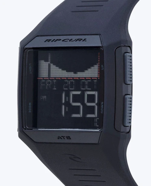 With 500 pre-programmed tide locations in graph or detailed display, the Rifles men’s tide watch is the perfect combination of function and value. The alarm, stopwatch, countdown timer and light on this digital surf watch put all the data you need right at your fingertips. The lightweight polyurethane construction is durable and waterproof tested to 100M.