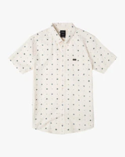 Look sharp without the effort in the RVCA That’ll Do Short Sleeve Shirt, featuring an allover geo print, button-down collar, and single chest pocket in a slim fit. Made from stretch oxford and a cotton-blended twill, this short sleeve men’s shirt has a scalloped hem and our signature solo label at the chest pocket hem.