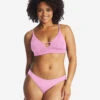 A women’s bikini top backed by athletic lines and sustainable construction, the RVCA VA Essential continues to support your active lifestyle with a high neckline and sports bra fit. An upgrade to your staple plain swimsuits, the high neck bikini top is made from recycled performance swim fabric that is stretchy and quick-drying. Sporty lines are finished with a rubber RVCA patch at the front.